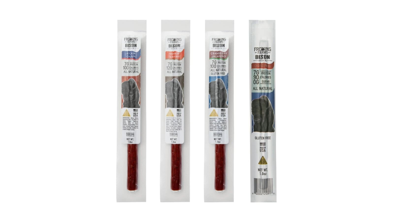 All flavors of Froning Farms Bison Sticks are made with lean American bison meat and contain no added preservatives. Bison is comparatively low in fat, calories, and cholesterol, and according to the USDA, it’s also a better source of protein, iron, and vitamin B-12 than beef, pork, chicken or salmon. Keto and Paleo friendly. See more details on each jerky flavor below.