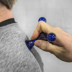 The knobs of the four legs of the Jacknobber® II massage tool can be used in many ways to apply deep pressure to muscular trigger points and tension. The smaller knobs provide more intense pressure while the larger knobs provide a gentler pressure. Use one knob at a time to press deeply into imbedded trigger points; use two knobs at a time on either side of the spine. Arguably this is the most satisfying and easy to use hand held massage tool available.
