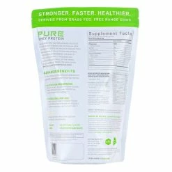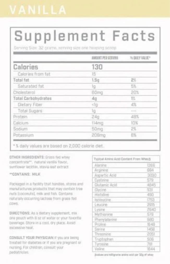 This whey protein is derived from grass fed, free range cows that are never treated with antibiotics or bovine growth hormones. It is a rich source of the essential amino acids needed on a daily basis by the body. It hydrates well in water and is absorbed very well by your body. All whey proteins differ in lactose content, fats and calcium and Pure Whey has low lactose content (averaging about 1.8%); is low in cholesterol; and high in free calcium.